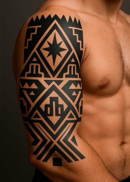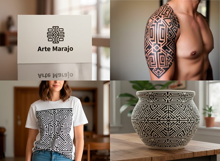 Esses não são “só desenhos bonitos”. São padrões geométricos labirínticos, formas zoomorfas (animais) e antropomorfas (humanas) que carregam séculos de identidade visual, espiritualidade e força estética.